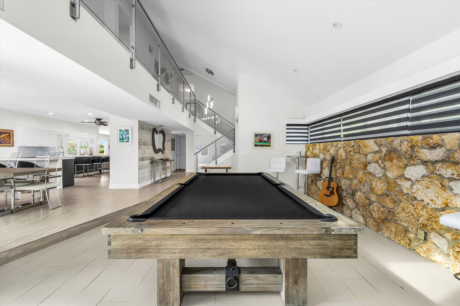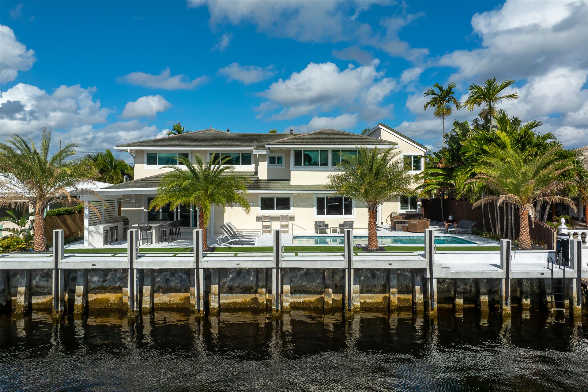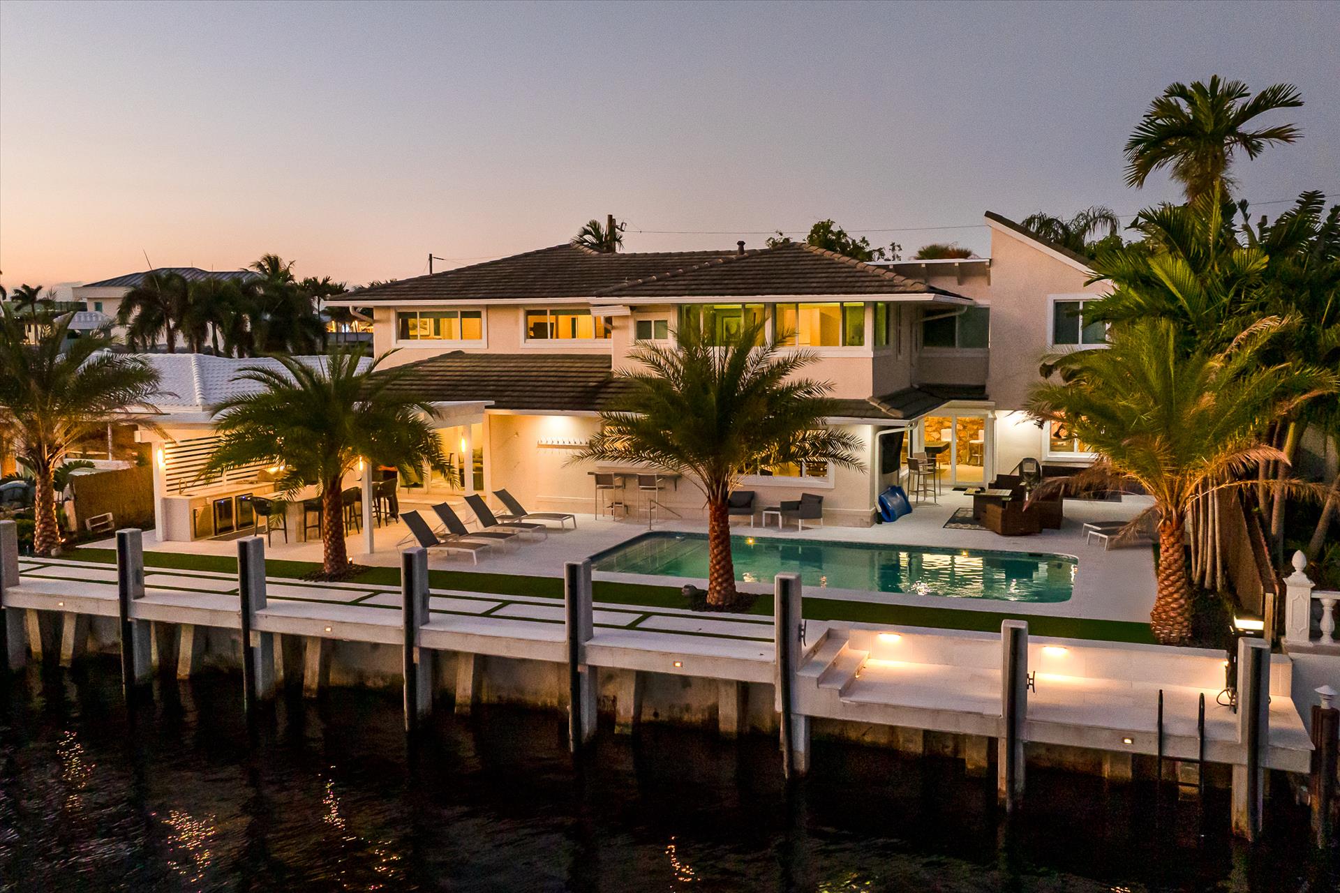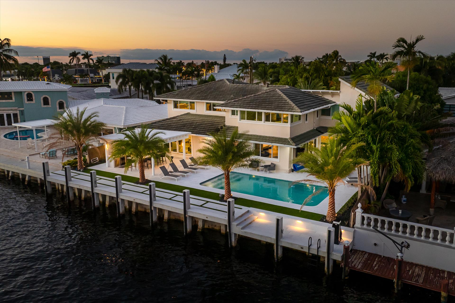This exquisite property is a definition of a perfect vacation spot ! Outstanding two level waterfront house features 5 bedrooms, 4 bathrooms, designated office space, entertaining area, heated pool and endless list of high end amenities. Modern designer furniture and sleek chef's fully equipped kitchen will make you feel at home away from home. House boasts with a downstairs guest en-suite queen size bedroom, while offering 3 guest bedrooms and a primary resort type suite upstairs. Master bedroom is featuring plush King size bed, soaking bath and a customized bathroom with a walking shower. Heated pool, new modern dock, summer kitchen, plush sitting area with TV, along with outside dining and beautiful night time lightning make this house a true gem for those, who truly appreciate the perks of water front living!