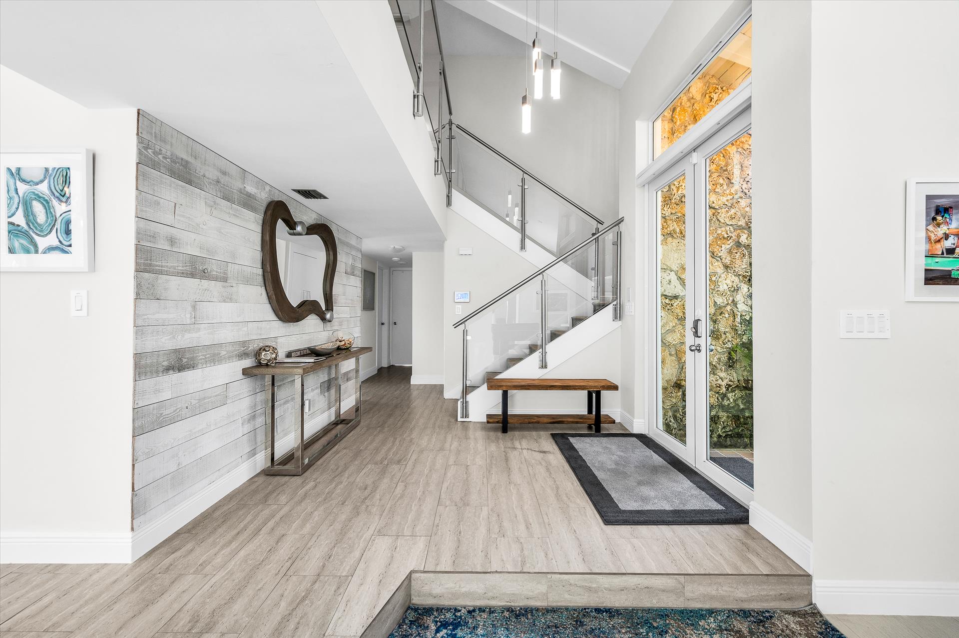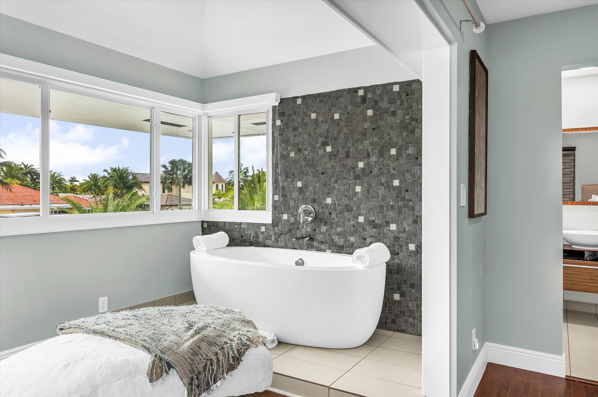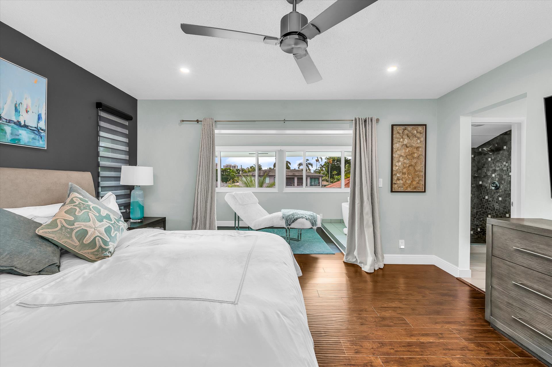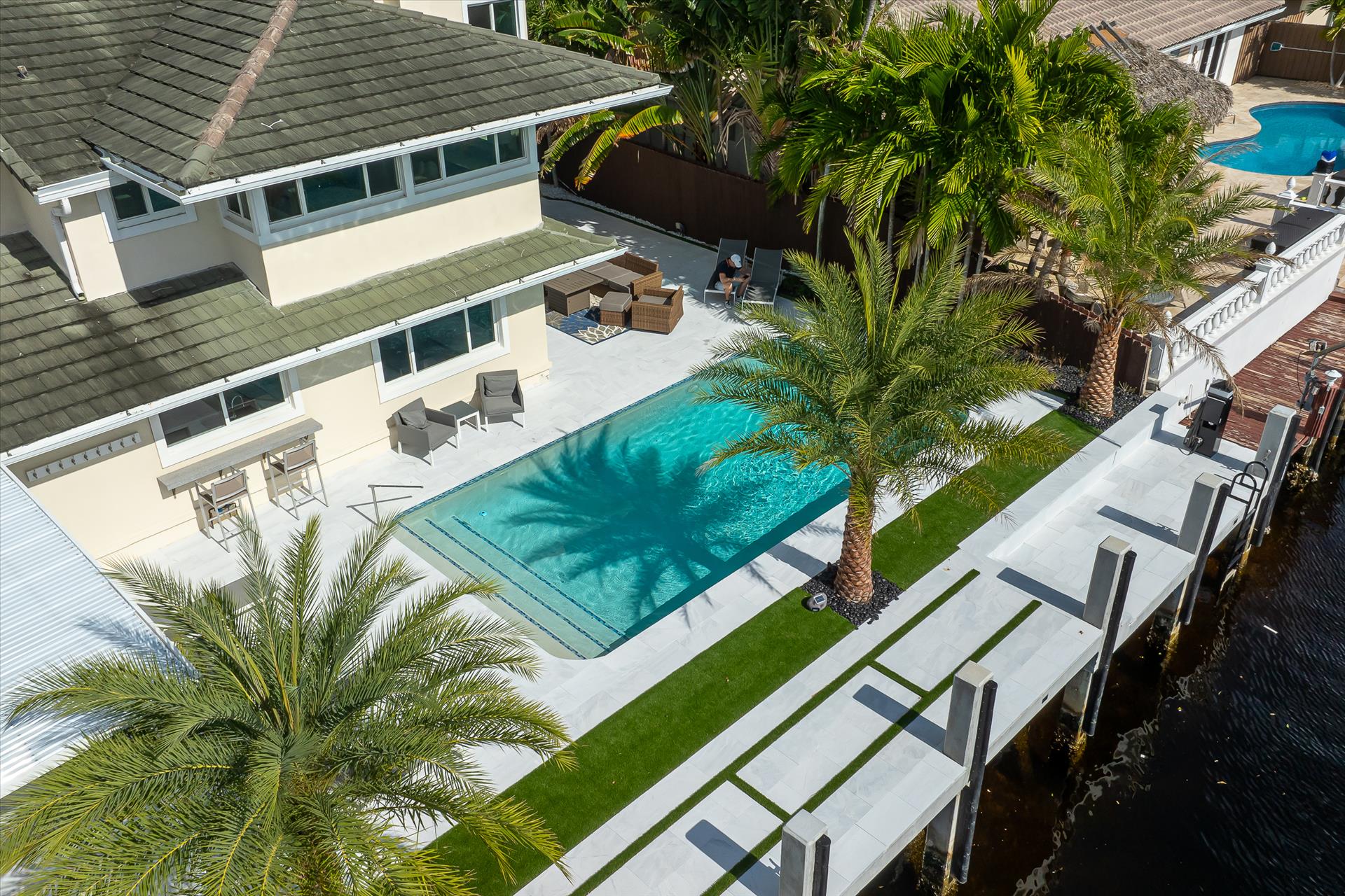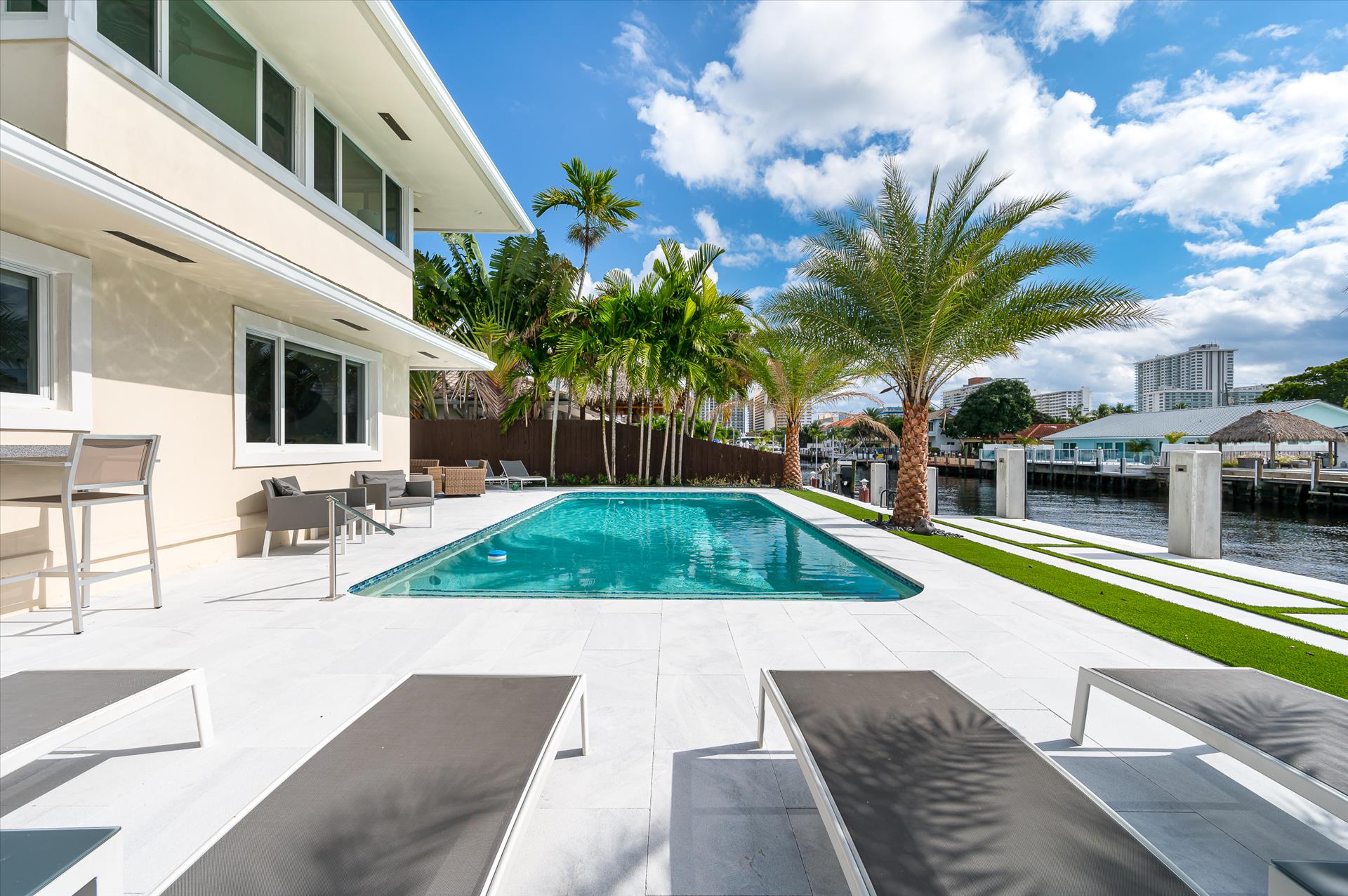 This exquisite property is a definition of a perfect vacation spot ! Outstanding two level waterfront house features 5 bedrooms, 4 bathrooms, designated office space, entertaining area, heated pool and endless list of high end amenities. Modern designer furniture and sleek chef's fully equipped kitchen will make you feel at home away from home. House boasts with a downstairs guest en-suite queen size bedroom, while offering 3 guest bedrooms and a primary resort type suite upstairs. Master bedroom is featuring plush King size bed, soaking bath and a customized bathroom with a walking shower. Heated pool, new modern dock, summer kitchen, plush sitting area with TV, along with outside dining and beautiful night time lightning make this house a true gem for those, who truly appreciate the perks of water front living!