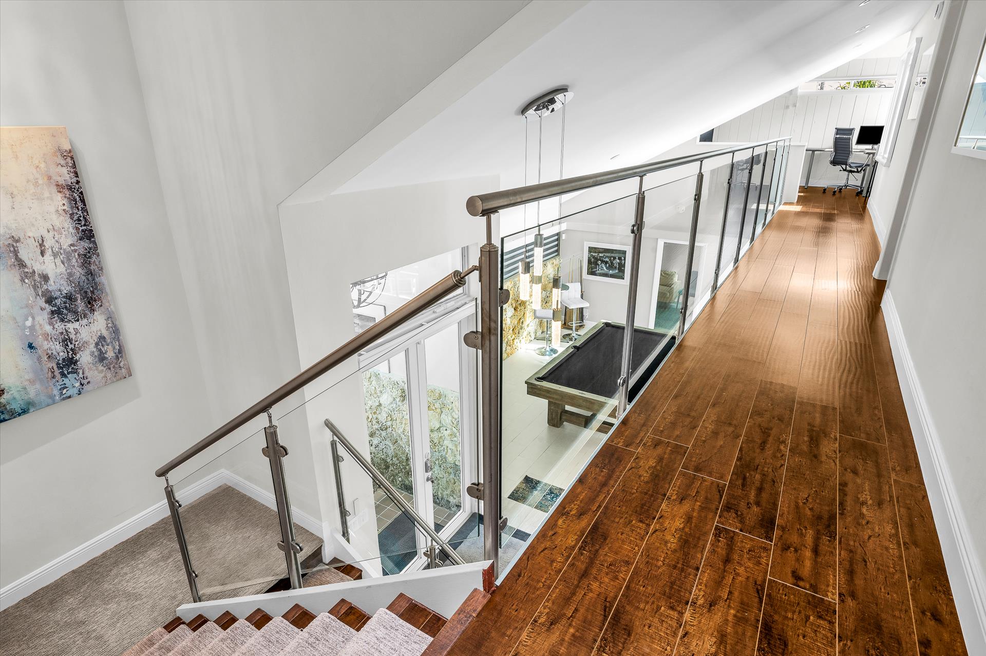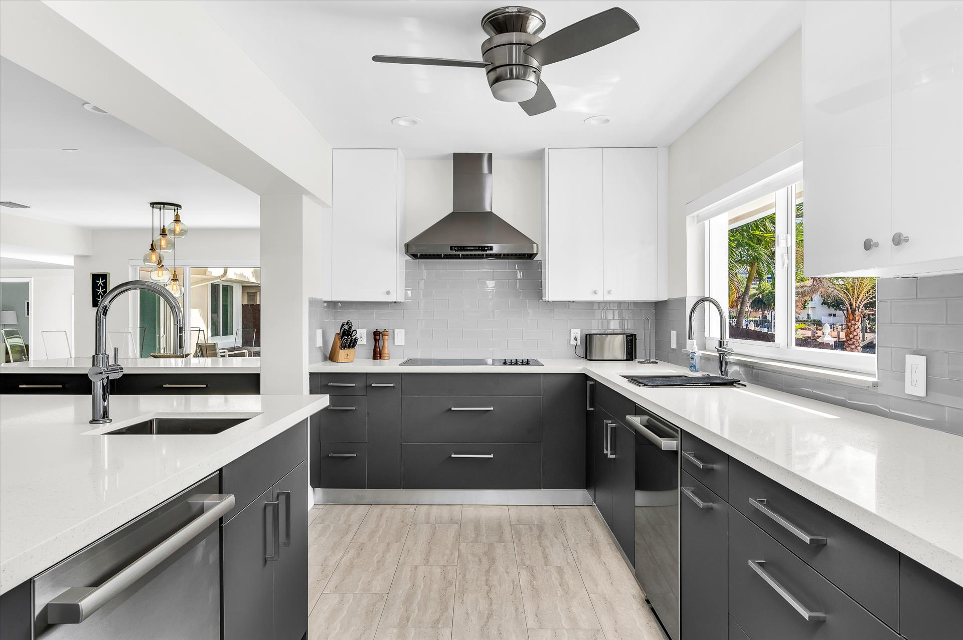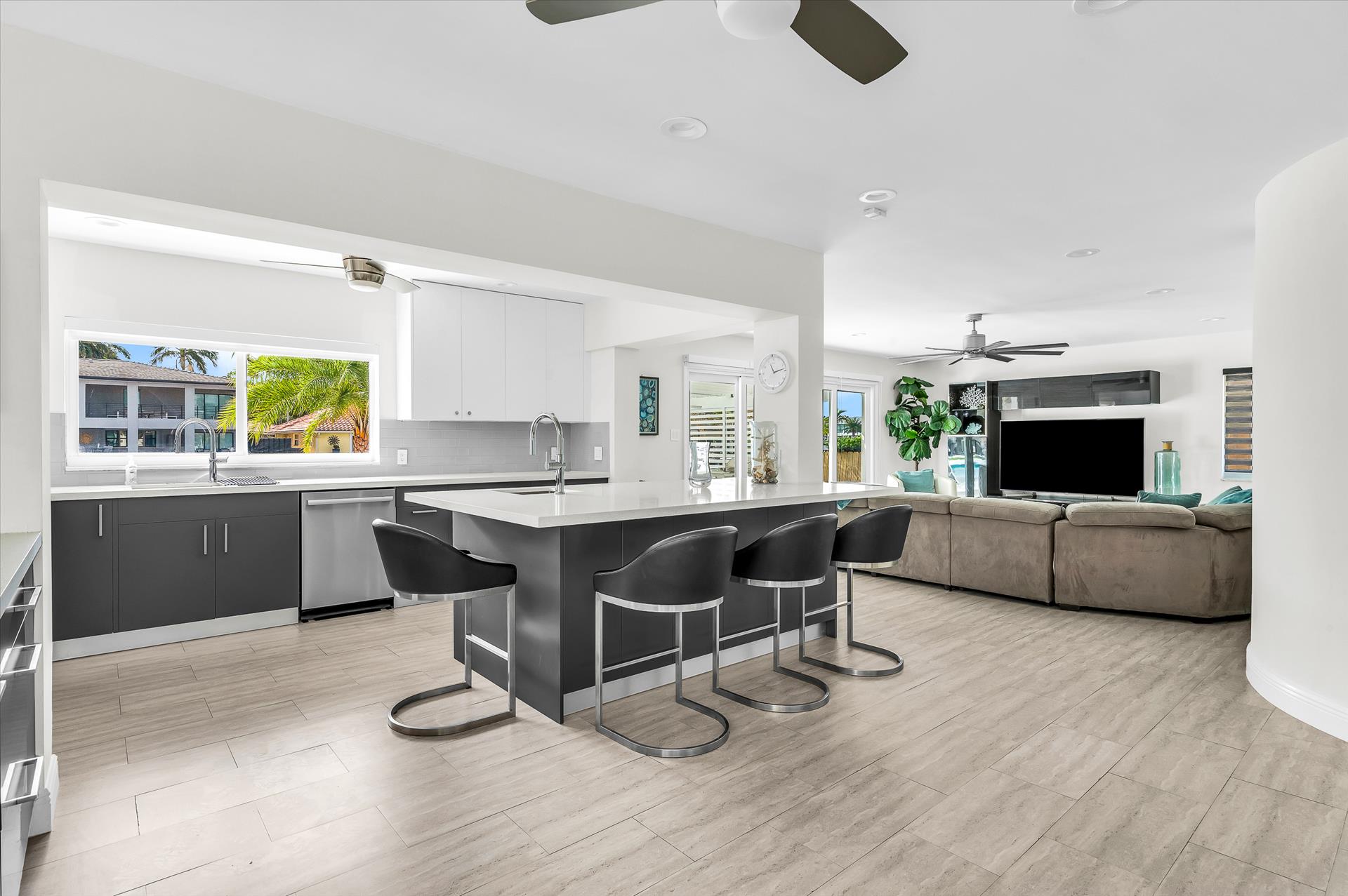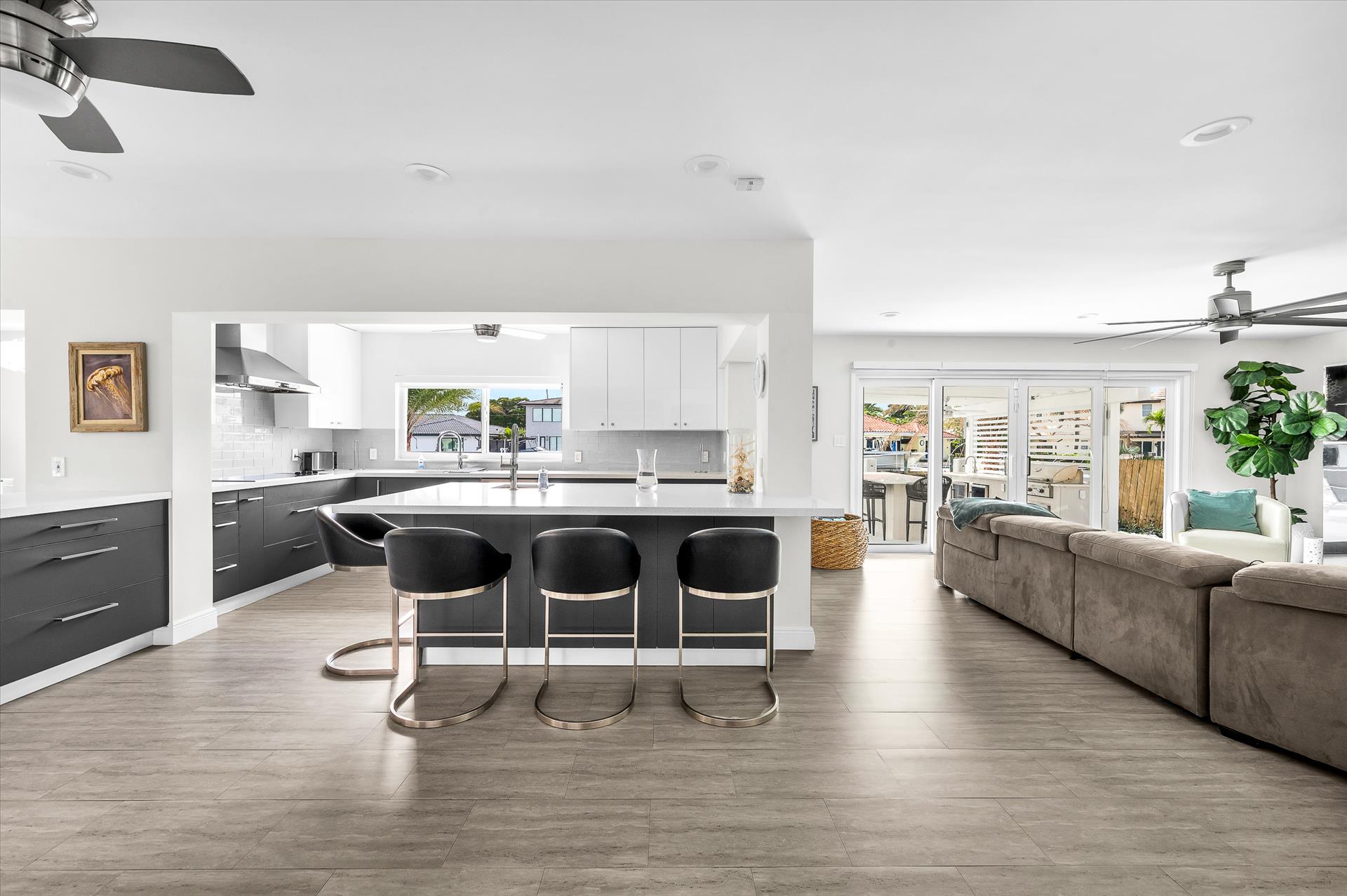 This exquisite property is a definition of a perfect vacation spot ! Outstanding two level waterfront house features 5 bedrooms, 4 bathrooms, designated office space, entertaining area, heated pool and endless list of high end amenities. Modern designer furniture and sleek chef's fully equipped kitchen will make you feel at home away from home. House boasts with a downstairs guest en-suite queen size bedroom, while offering 3 guest bedrooms and a primary resort type suite upstairs. Master bedroom is featuring plush King size bed, soaking bath and a customized bathroom with a walking shower. Heated pool, new modern dock, summer kitchen, plush sitting area with TV, along with outside dining and beautiful night time lightning make this house a true gem for those, who truly appreciate the perks of water front living!