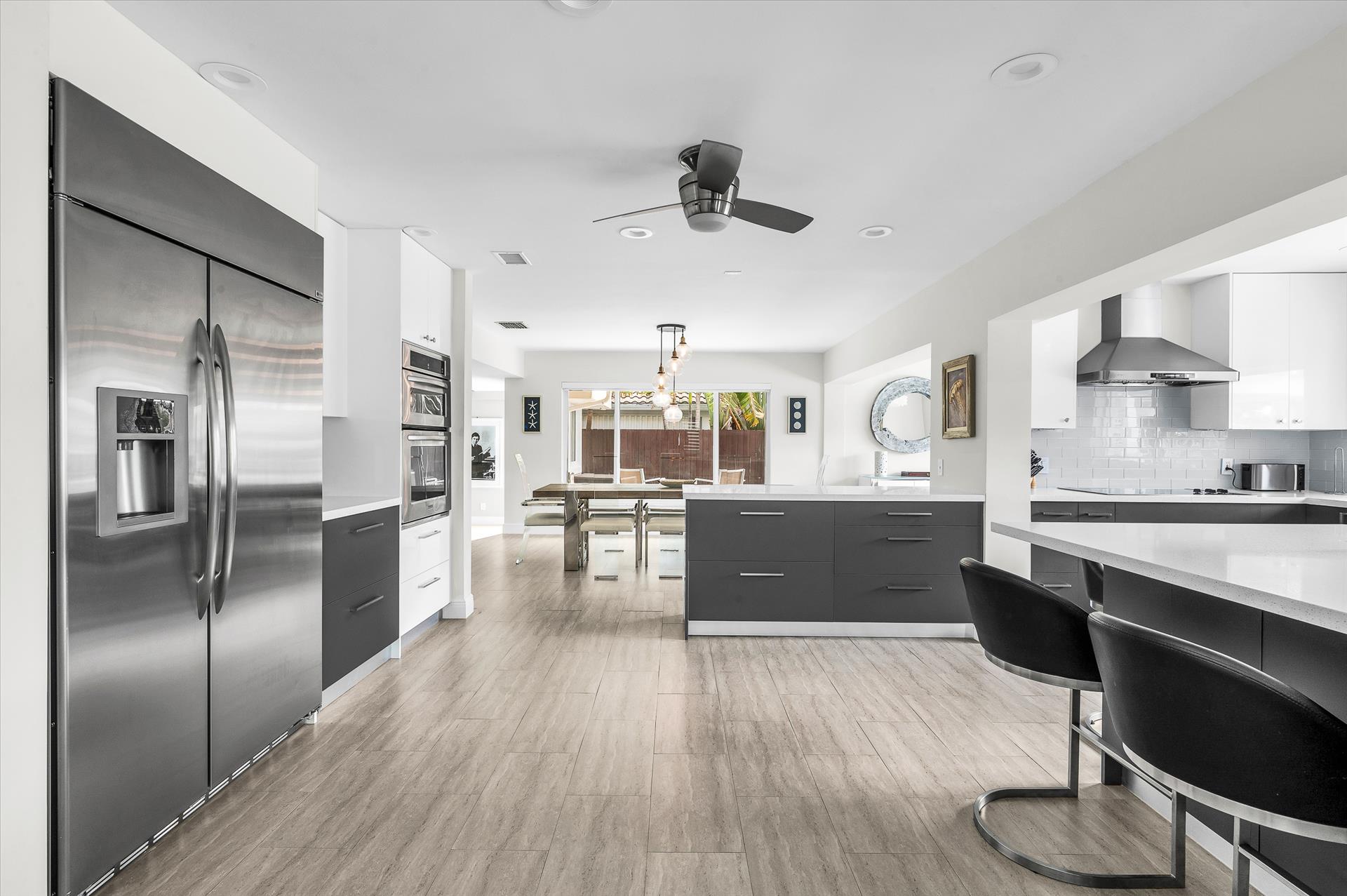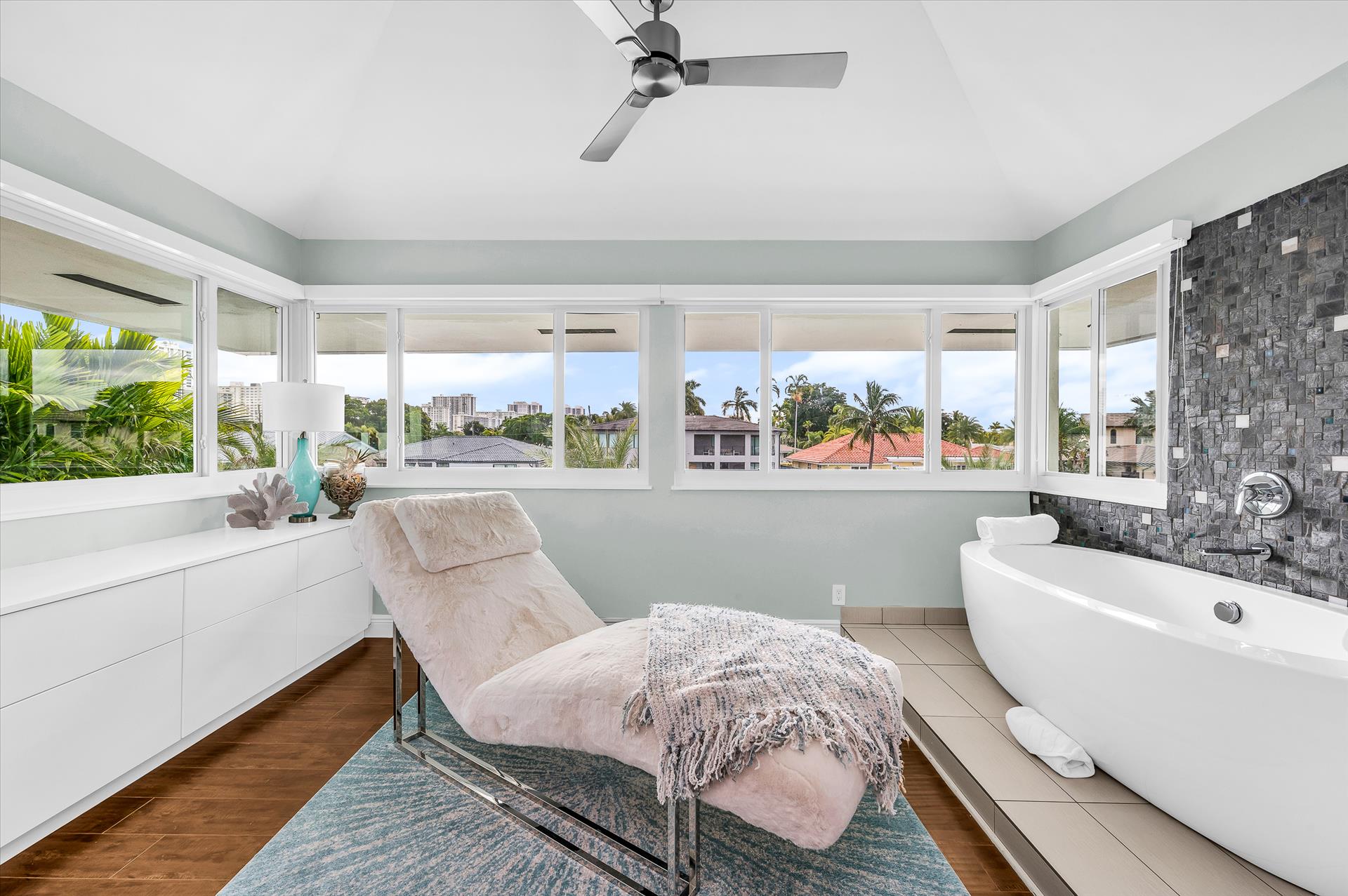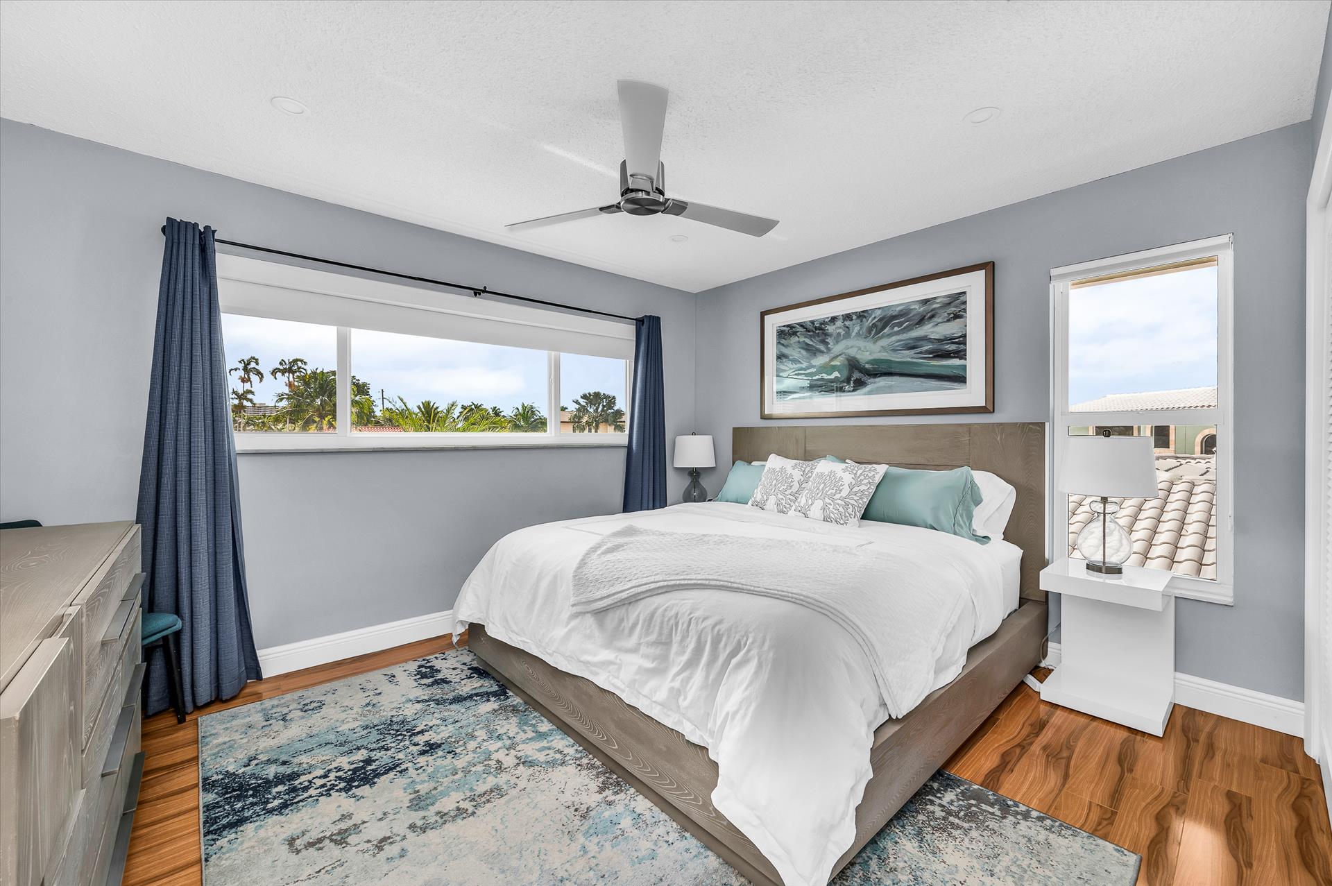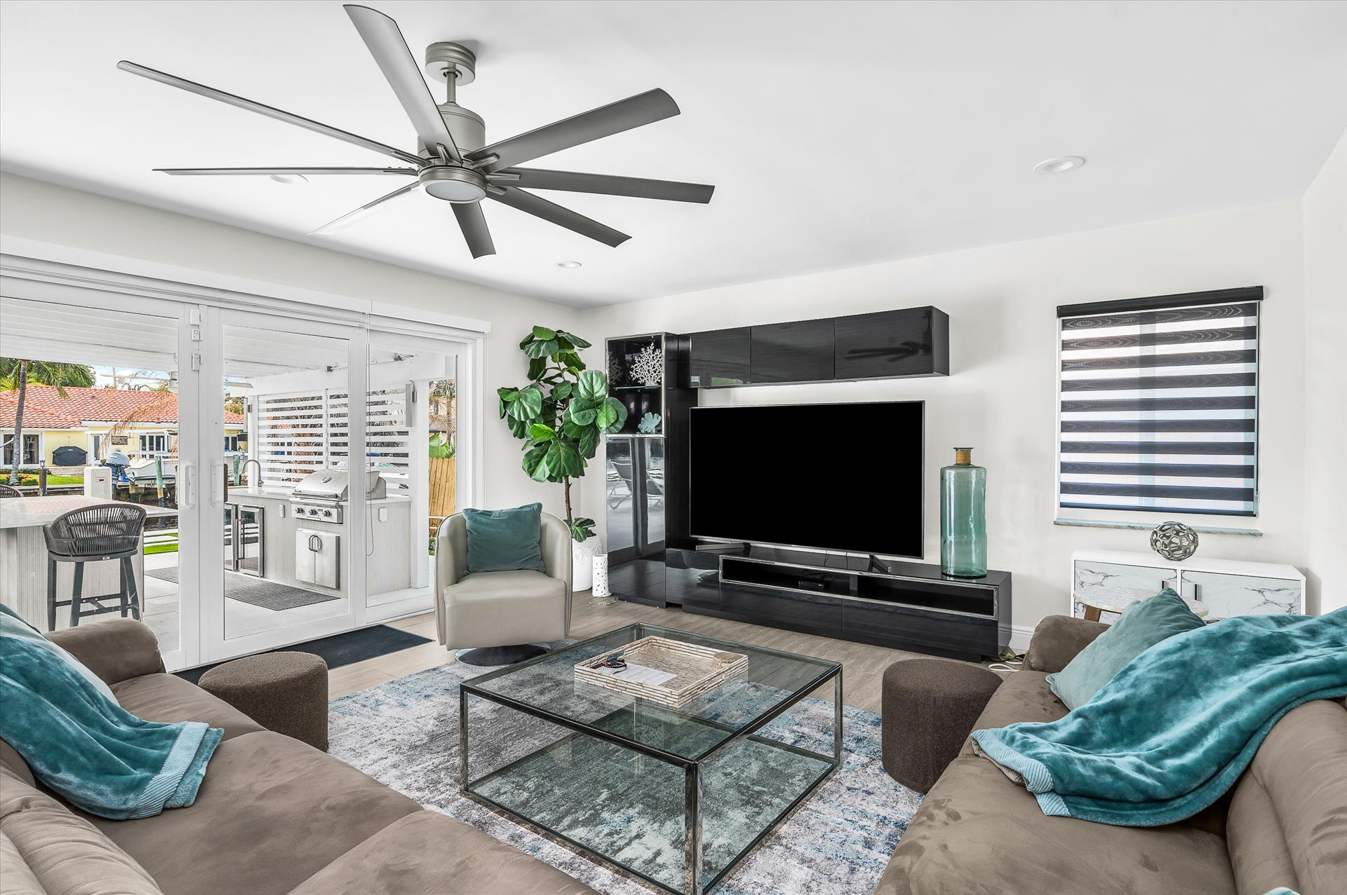 This exquisite property is a definition of a perfect vacation spot ! Outstanding two level waterfront house features 5 bedrooms, 4 bathrooms, designated office space, entertaining area, heated pool and endless list of high end amenities. Modern designer furniture and sleek chef's fully equipped kitchen will make you feel at home away from home. House boasts with a downstairs guest en-suite queen size bedroom, while offering 3 guest bedrooms and a primary resort type suite upstairs. Master bedroom is featuring plush King size bed, soaking bath and a customized bathroom with a walking shower. Heated pool, new modern dock, summer kitchen, plush sitting area with TV, along with outside dining and beautiful night time lightning make this house a true gem for those, who truly appreciate the perks of water front living!