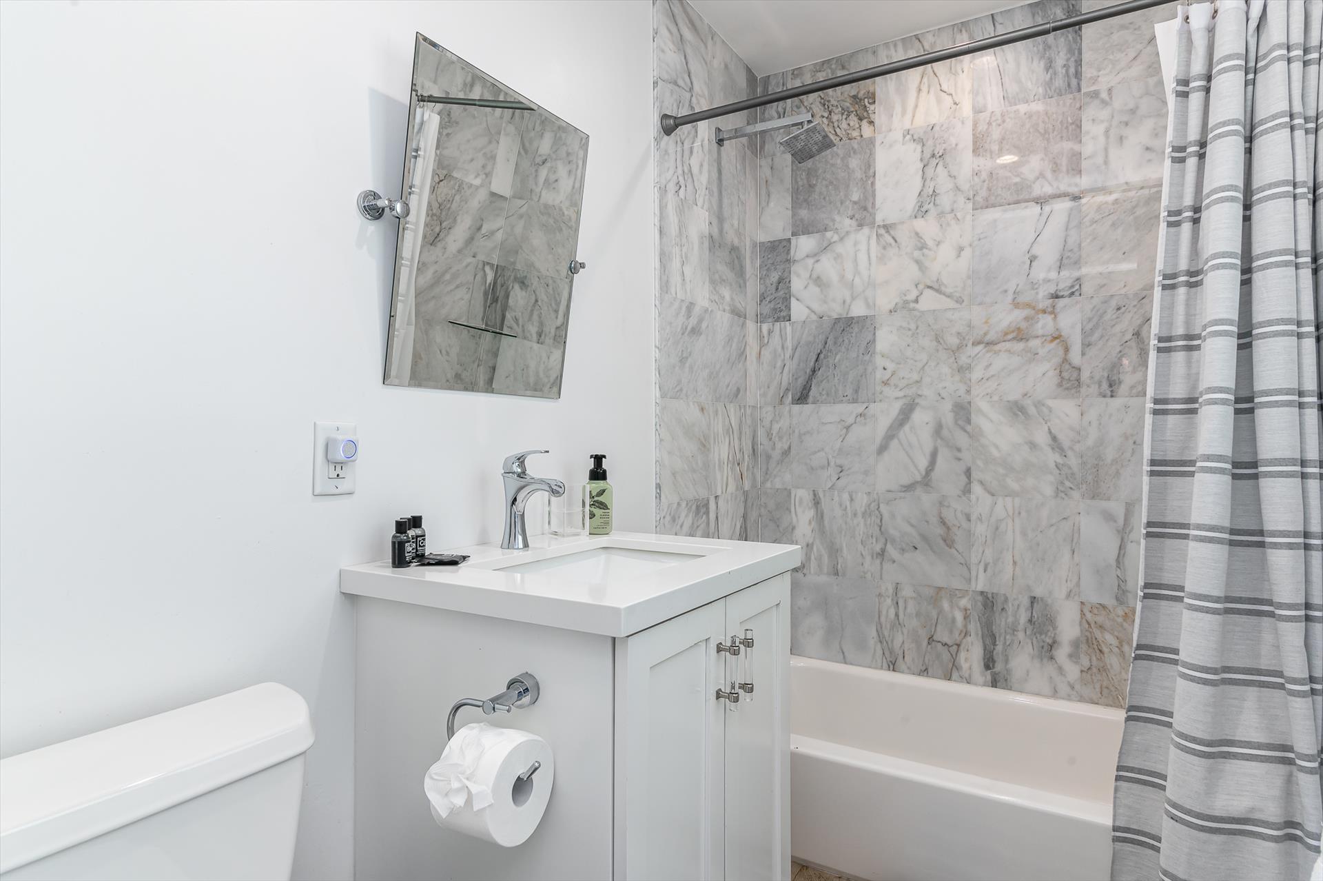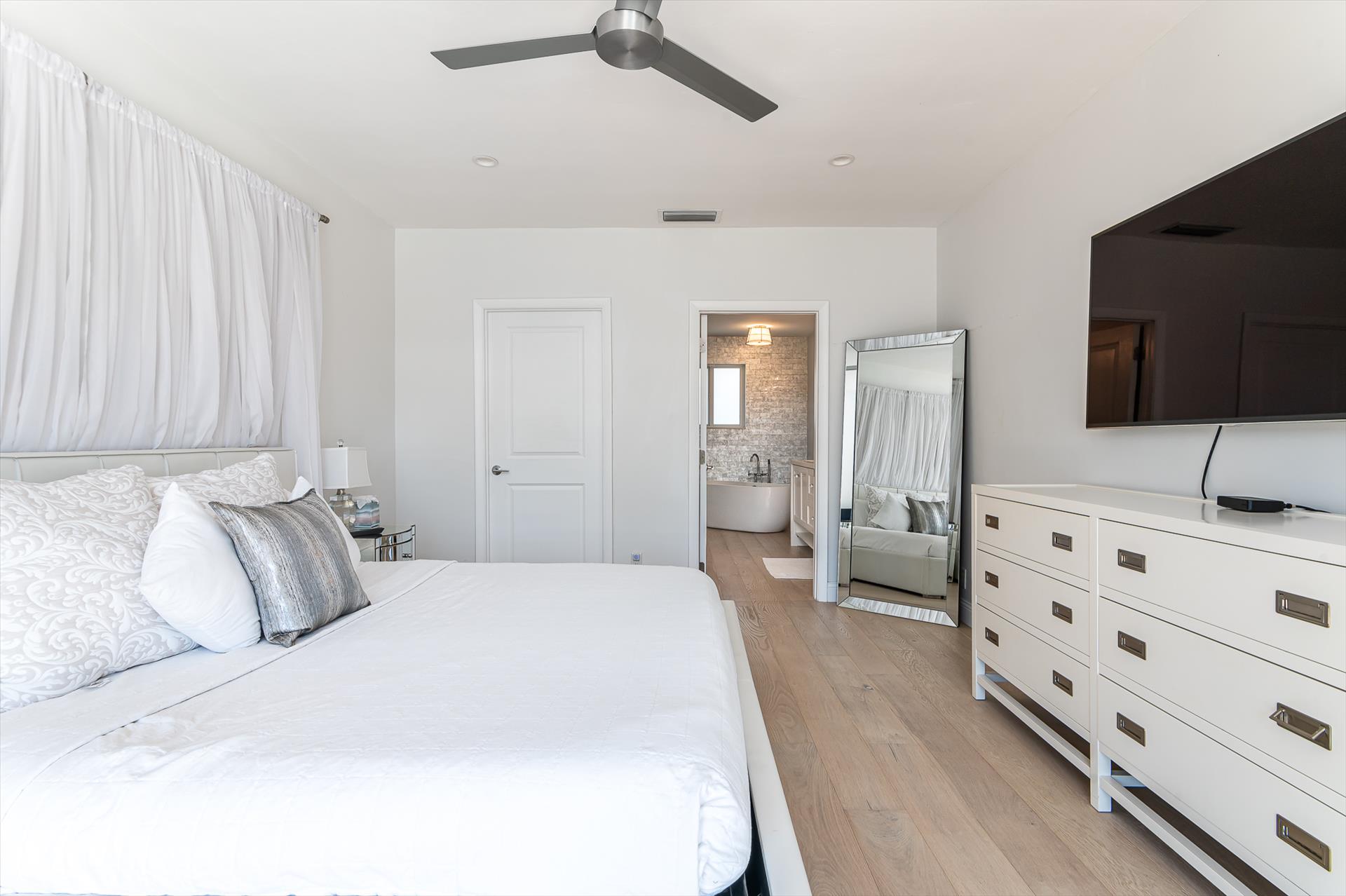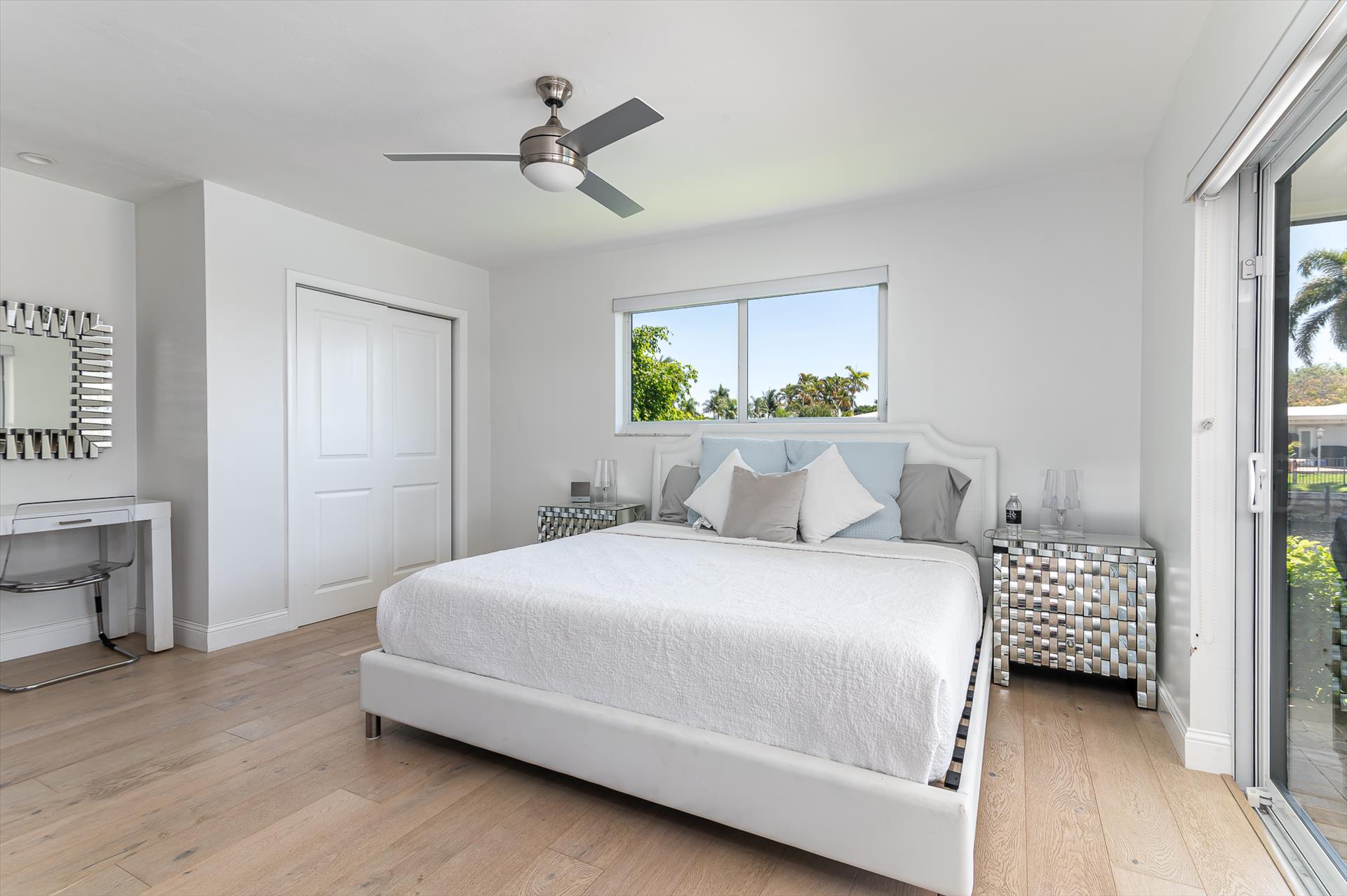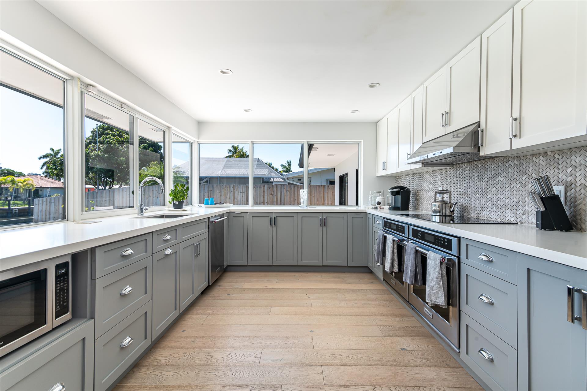 Beautifully decorated villa with an ultra modern motif - 4 Bedrooms/ 3 Bathrooms with over 2,166 of living space boasts with a chick and stylish design. House features updated, fully equipped kitchen with stainless steel appliances, overlooking beautiful pool area and water views, which is a perfect place for those, who like to cook at home ! Modern and sleek dining area is a nice spot for cozy dinners with family and friends. Home features a king size master bedroom with gorgoeus en-suite bethroom , that would make you feel like at the 5 star resort! Second guest bedroom is also en-suite , third guest bedroom features a Queen bed and a connecting bathroom. The fourth bedroom has a little office space and a pull out sofa that creates 2 twin beds. All bedrooms and bathrooms match the contemporary vibe of the house. Gorgeous outside furnished deck with heated pool and grill is a wonderful place, where the whole family can get sun, BBQ, swim! Adults would enjoy sipping the wine , while watching the over the water sunsets and boats passing by . The dock is available for the guests use ( 80 ft waterfront and can fir 70ft boat, fixed bridge clearance is 13'5 and 10'5 over high tide). This vacation villa is perfectly located : you are close to the beach and many water activities. Just off the Commercial Blvd. , with it's enormous choice of restaurants and supermarkets and quick access to the mesmerizing beach! Within 20 min drive to the Las Olas Boulevard with it's fine dining and shopping!
