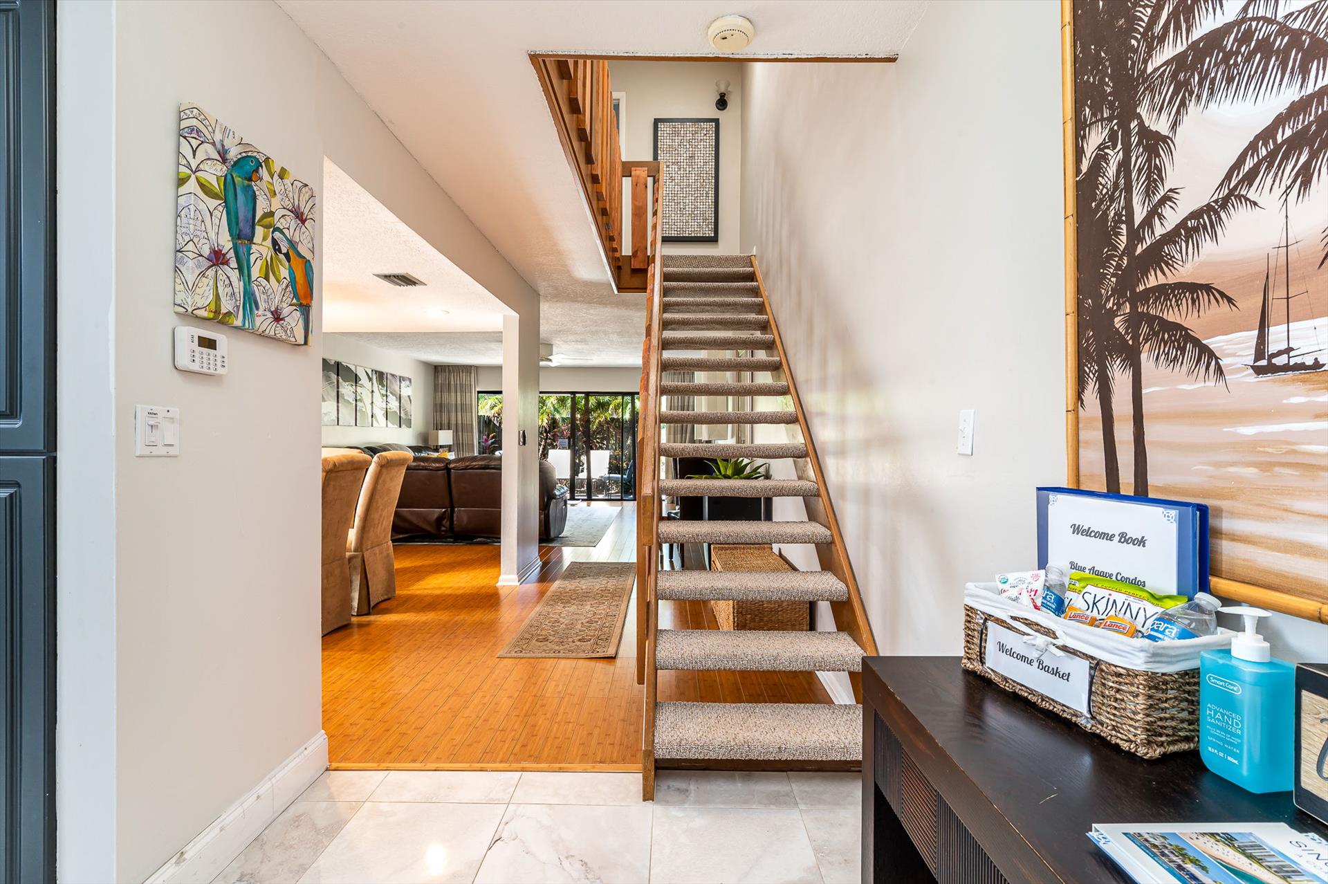This amazing 1500 sq ft. 2 level townhome features 2 bedrooms and 2.5 bath and is nestled in an unbeatable location!The building is quiet and exclusive, features only 4 units in total, each with its own separate entrance and private back patio. Townhome is beautifully decorated and would make you instantly feel relaxed and filled with island vibes. This vacation rental is located just across from the one of the most beautiful beaches in US!Just imagine soft sand and turquoise water, shopping plaza and supermarkets, bars and restaurants, natural parks and snorkeling trails - all these literally at your doorstep! We offer our guests to use a common BBQ area at the back of the apartment and enjoy the dinner at the privacy of their own cozy backyard patio. Stay with us and do not miss an opportunity to explore the Palm Beach Shores, voted as one of Florida's Best Little Towns!