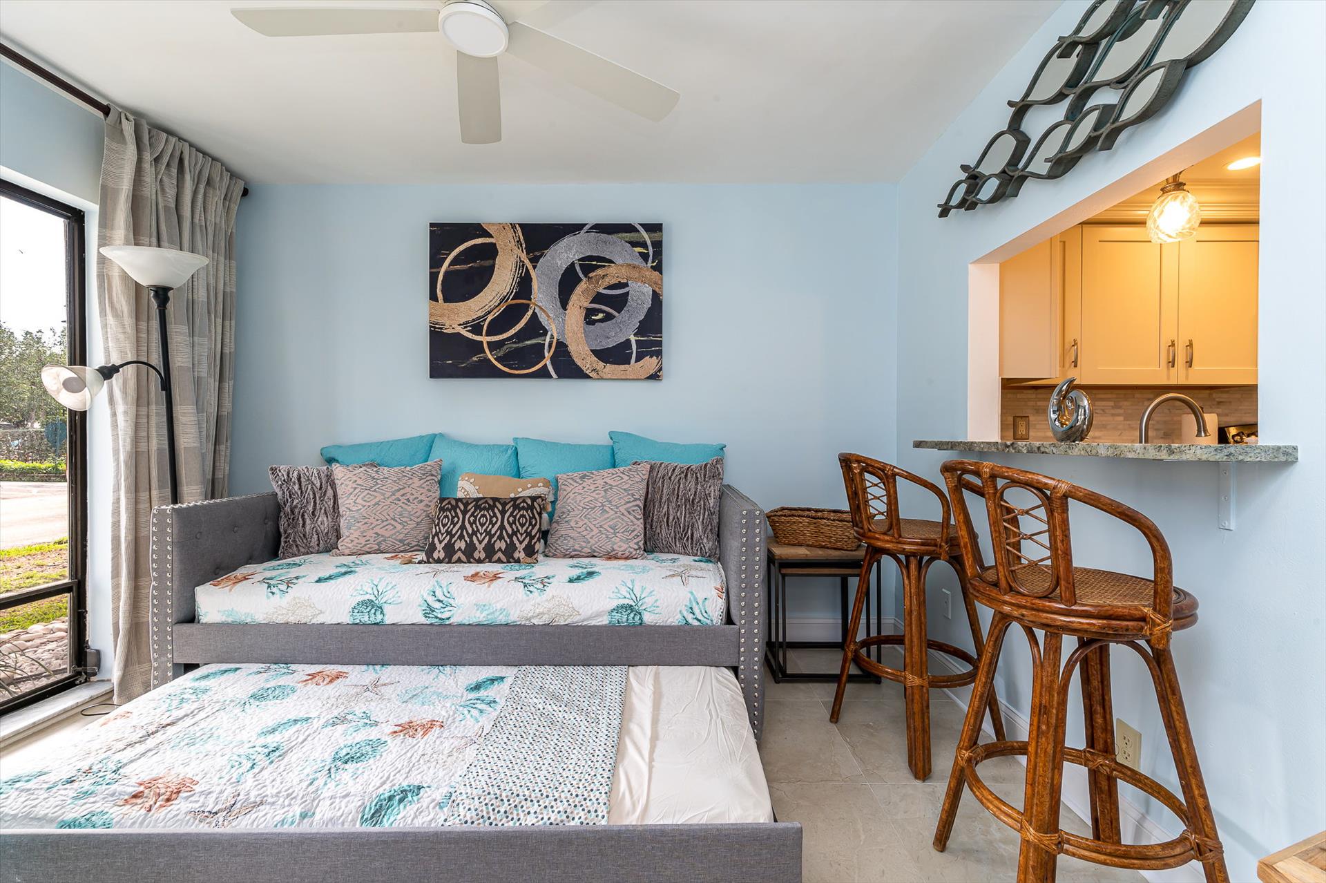 This amazing 1500 sq ft. 2 level townhome features 2 bedrooms and 2.5 bath and is nestled in an unbeatable location!The building is quiet and exclusive, features only 4 units in total, each with its own separate entrance and private back patio. Townhome is beautifully decorated and would make you instantly feel relaxed and filled with island vibes. This vacation rental is located just across from the one of the most beautiful beaches in US!Just imagine soft sand and turquoise water, shopping plaza and supermarkets, bars and restaurants, natural parks and snorkeling trails - all these literally at your doorstep! We offer our guests to use a common BBQ area at the back of the apartment and enjoy the dinner at the privacy of their own cozy backyard patio. Stay with us and do not miss an opportunity to explore the Palm Beach Shores, voted as one of Florida's Best Little Towns!