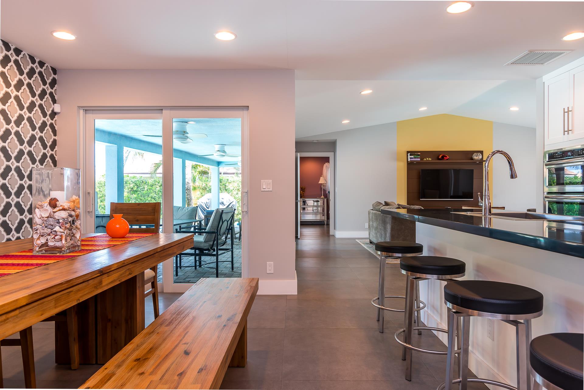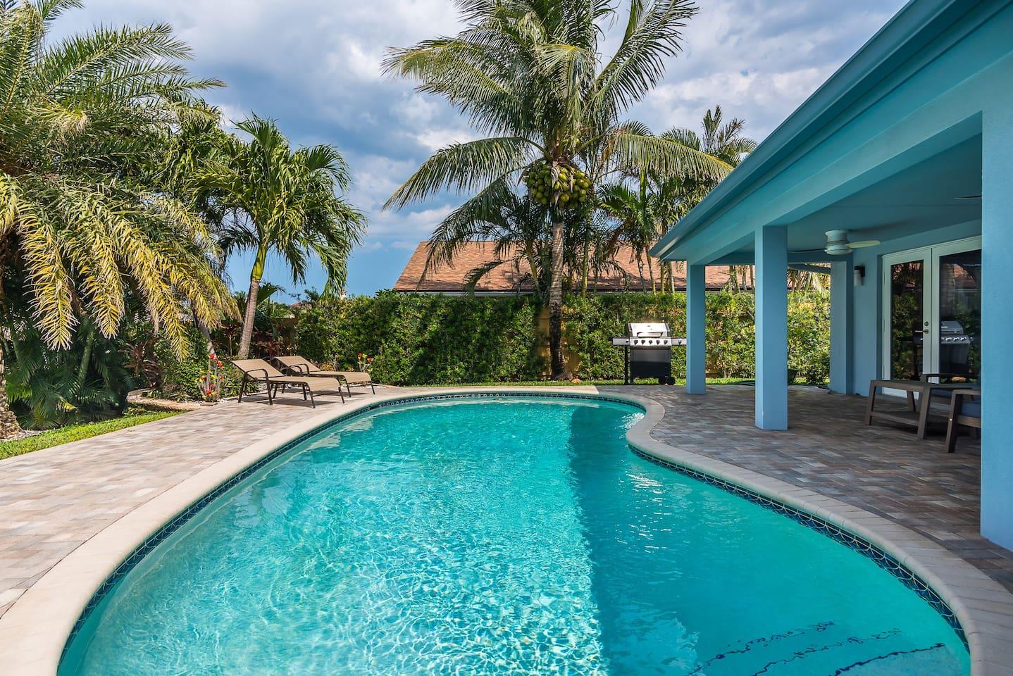 Newly renovated cozy pool house has everything you need for unforgettable getaway! Enjoy amazing waterfront views of the canal , while grilling and dining under shade of lanai on your private heated pool deck . Fully equipped kitchen, new moderns appliances , gorgeous top of the line bathrooms and tasteful furnishing. Spacious 4 bedrooms , each uniquely decorated to create the atmosphere of the tropical paradise. Master suite is featuring special order European furniture and built in closet, while master en-suite bathroom is decorated to match the bedroom and is equipped with walk in custom- made shower, jetted bath and double sink vanity.